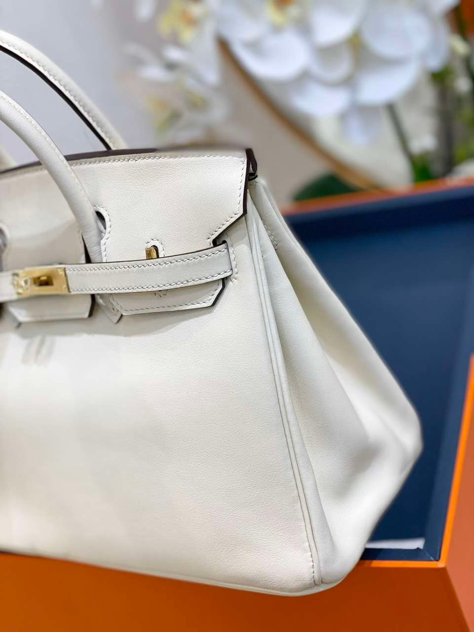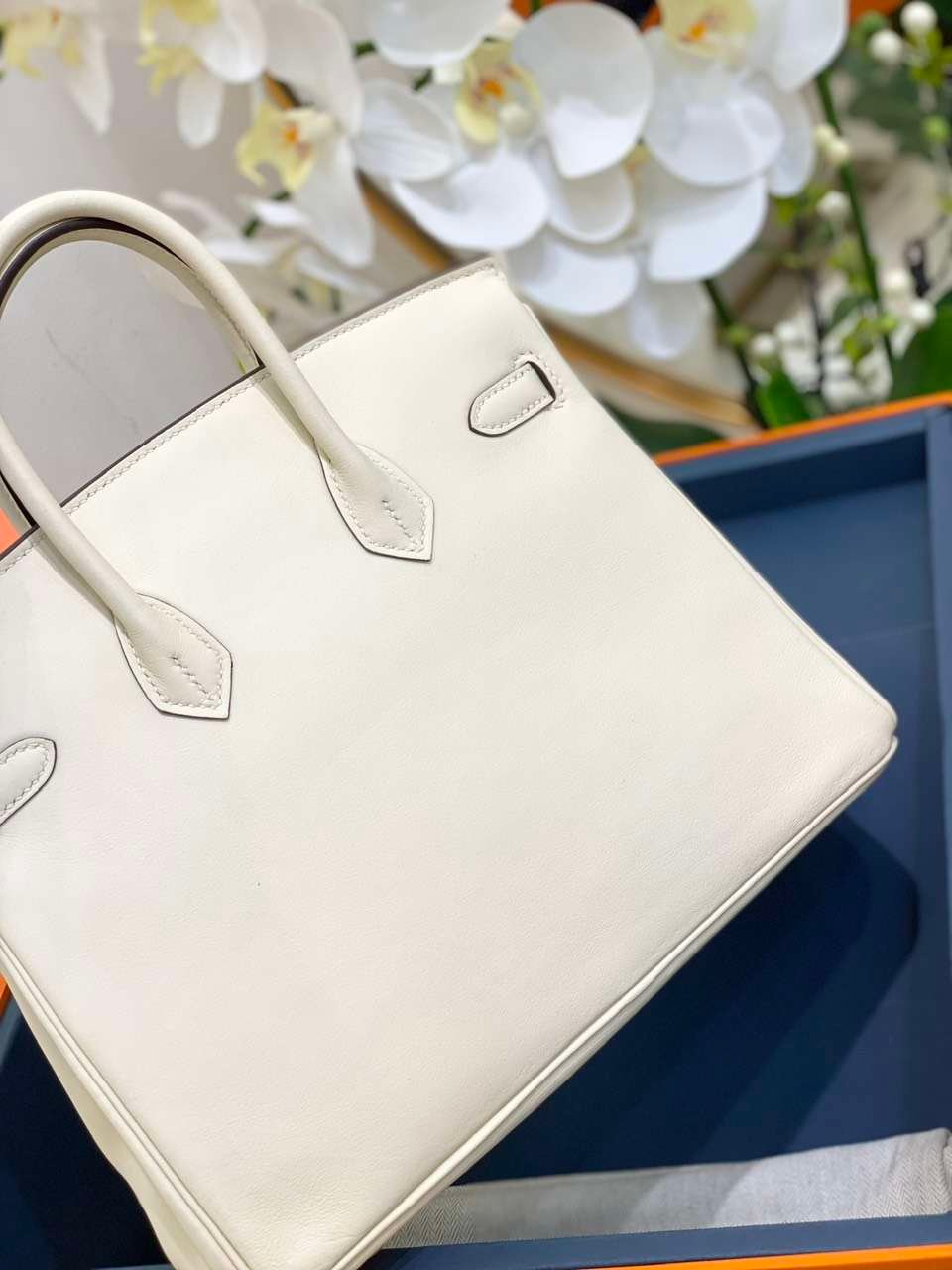 Hermes Birkin White Smooth Leather Fake Handbags Hand Sewing 25cm